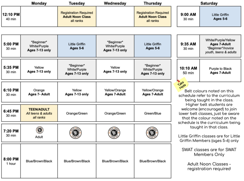 All Little Griffin ranks: 30 min (1 class per week)